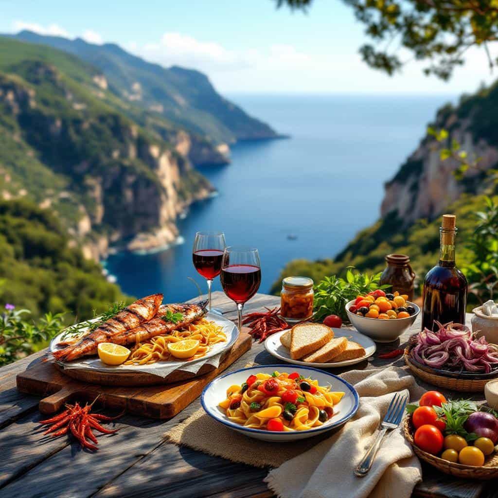 Attraversare la Calabria a piedi è come attraversare diversi paesi in un solo giorno, e il piatto rispecchia questo viaggio. Nell'entroterra, i massicci della Sila e dell'Aspromonte offrono boschi, castagne, funghi e pascoli per pecore e capre; lungo le coste, acciughe, pesce spada e tonno dominano le reti. Non è un caso che molti piatti tradizionali abbinino salumi dell'entroterra ai sapori nati dal mare, o che i formati di pasta più poveri siano conditi con sughi che profumano di fumo e sale. L'antropologo culinario Marino Niola ha sottolineato come la tavola calabrese rifletta un rapporto quasi simbiotico con il suo ambiente: tutto ciò che cresce su questi terreni sassosi o nuota nelle acque vicine trova il suo posto in una ricetta, spesso conservata sotto olio, sale o aceto per resistere ai lunghi inverni e ai precedenti periodi di isolamento. Ancora oggi, i visitatori notano subito che lo stesso menu può passare senza sforzo da una crema di maiale piccante a una profumata zuppa di pesce, senza mai perdere il suo distinto senso del luogo. Il risultato è una cucina che conforta e sfida allo stesso tempo, ancorata alla terra ma sempre sfiorata dalla brezza marina.